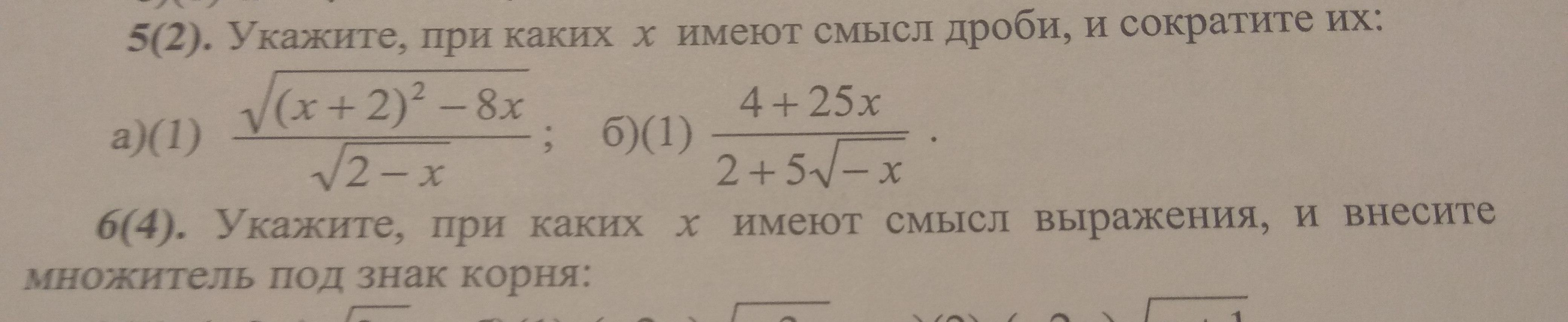 Укажите, при каких х имеют смысл дроби, и сократите их: