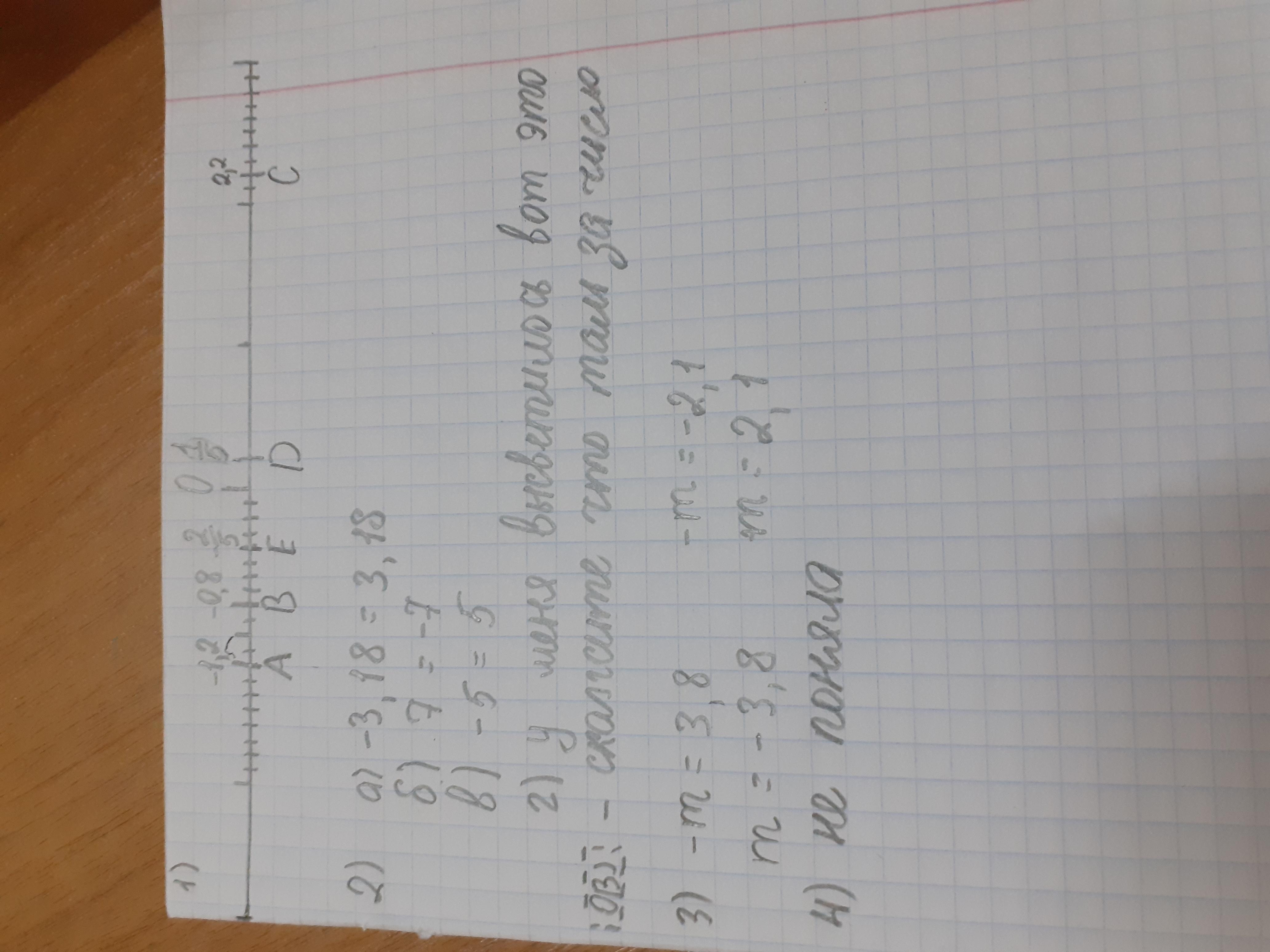 1. Отметьте на координатной прямой точки А (—1,2), В (—0,8), С (2,2), D (1/5) и Е (-2/5). За единичный отрезок примите долину пяти клеток тетради.