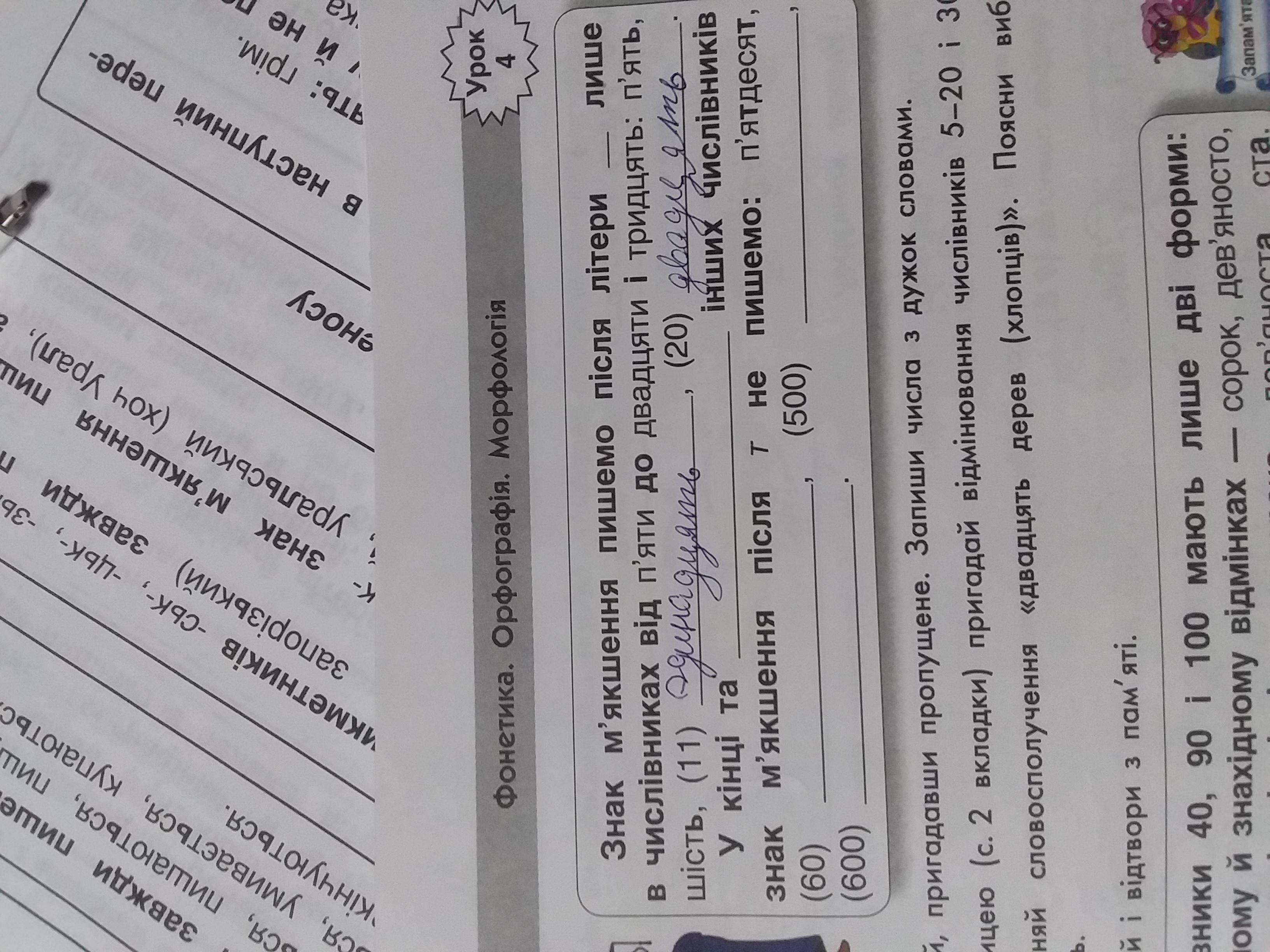 У кінці та середині інших числівників знак м'якшення після т не пишемо: шістдесят, п'ятсот, шістсот.