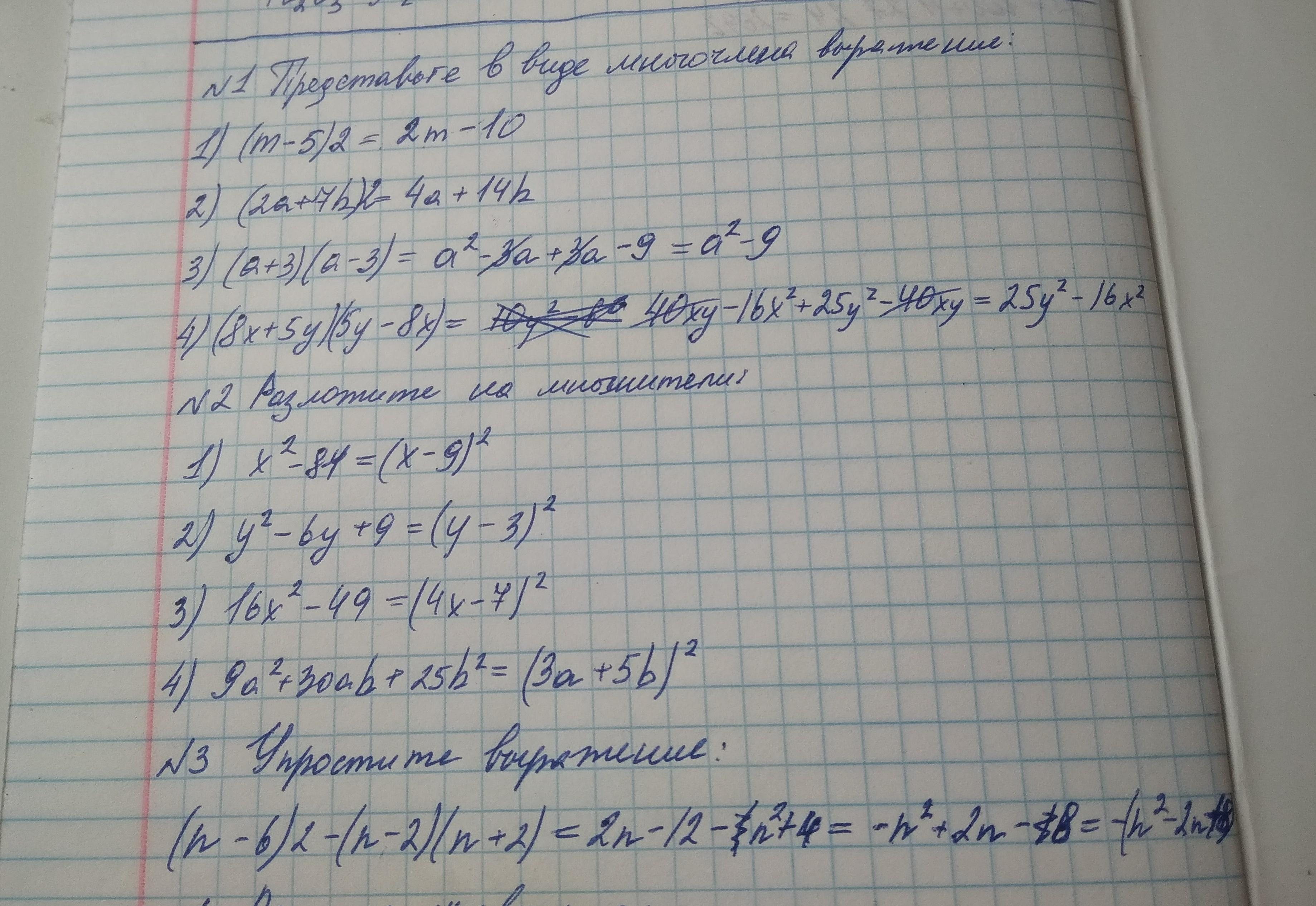 3. Упростите выражение: (n − 6)2 − (n − 2)(n + 2).