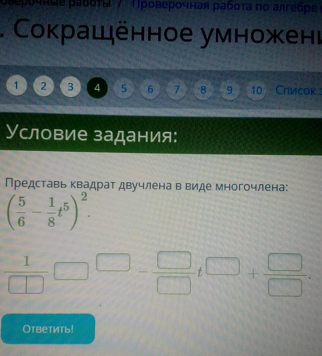 (5/6- 1/8 t^5)²=(5/6)²-2×(5/6)×1/8t^5+(1/8 t^5)²=26/36-5/24t^5+1/64t^10