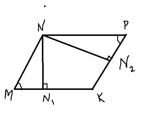 Т.к. MNPK - параллелограмм, то ∠M=∠P ⇒ sin∠M = sin∠P