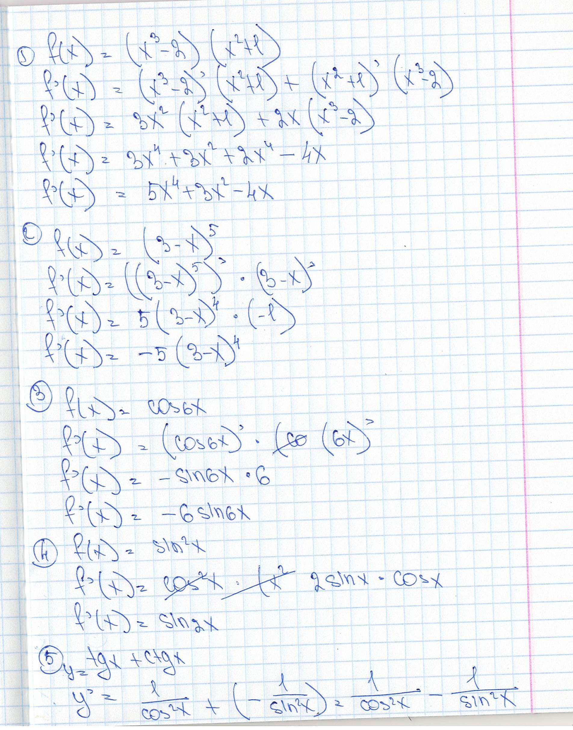найдите производную функции 1)f(x)=(x³-2)(x²+1)