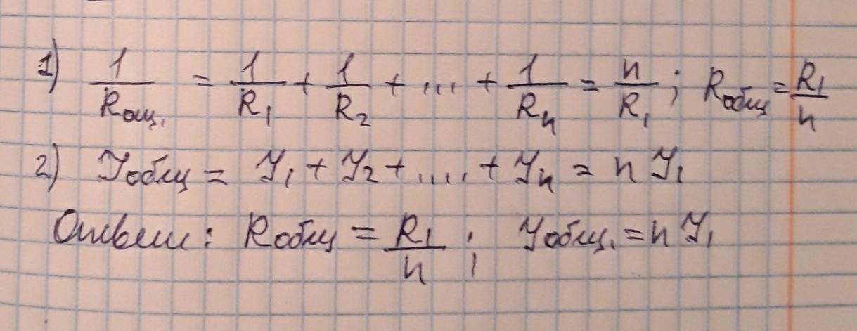 если n одинаковых сопротивлений r соединить параллельно то общее сопротивление r общее=....