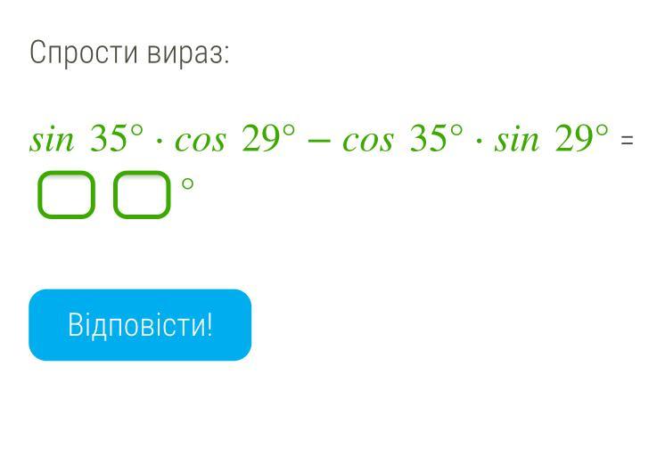 sin(35°)cos(29°)-cos(35°)sin(29°) = sin(35°-29°) = sin(6°)