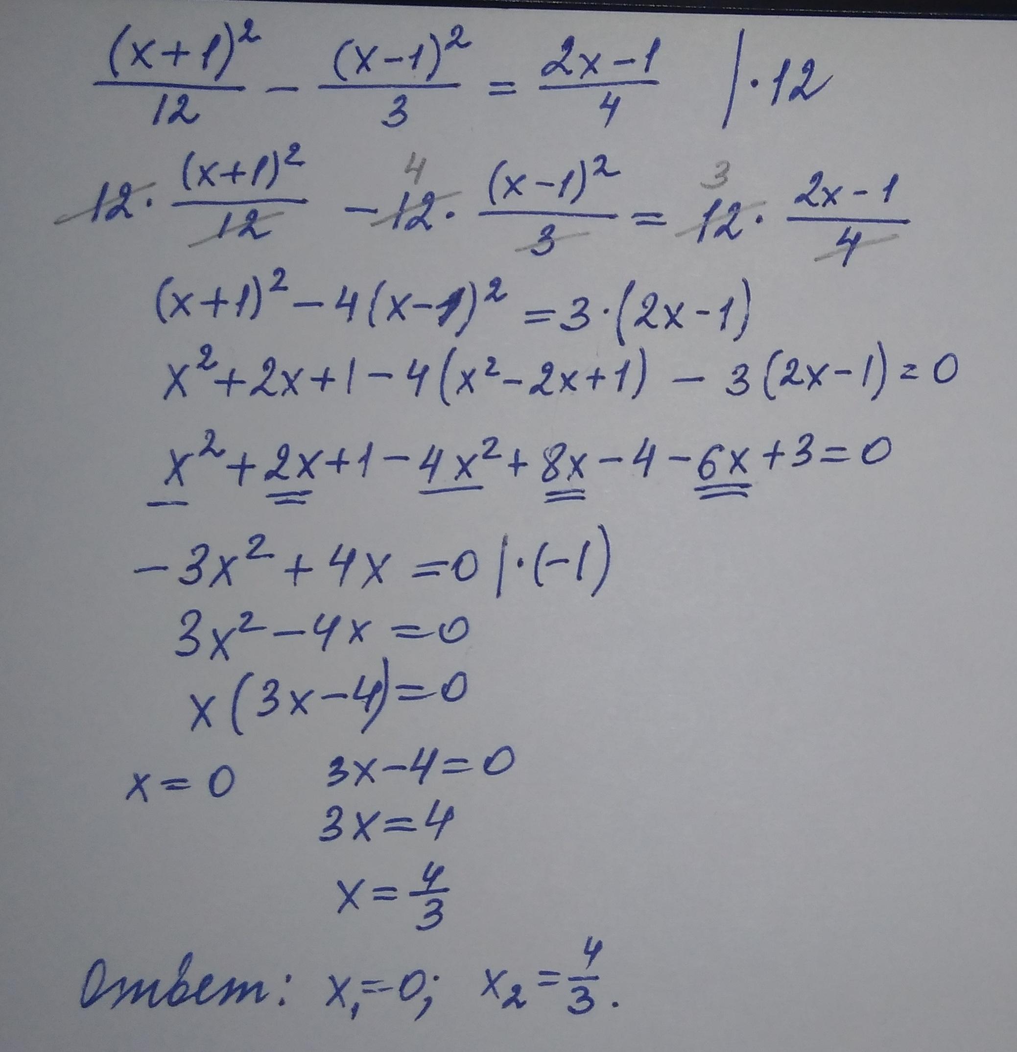 разве когда мы все множили на 12 не нужно то что мы отнимаем домножить на 4, и разницу на 3