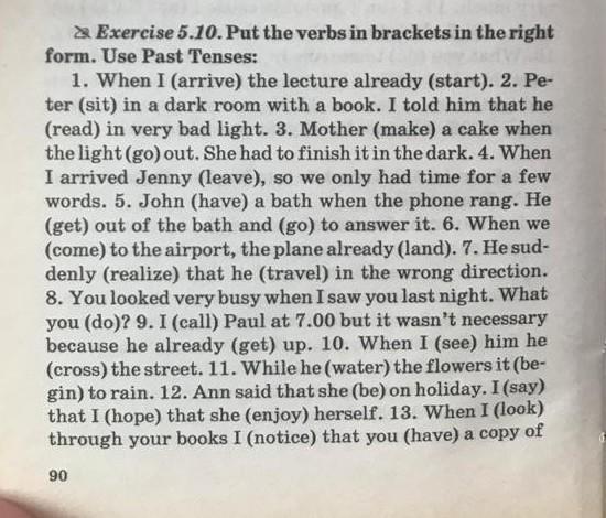 Exercise 5.10. Put the verbs in brackets in the right form. Use Past Tenses: