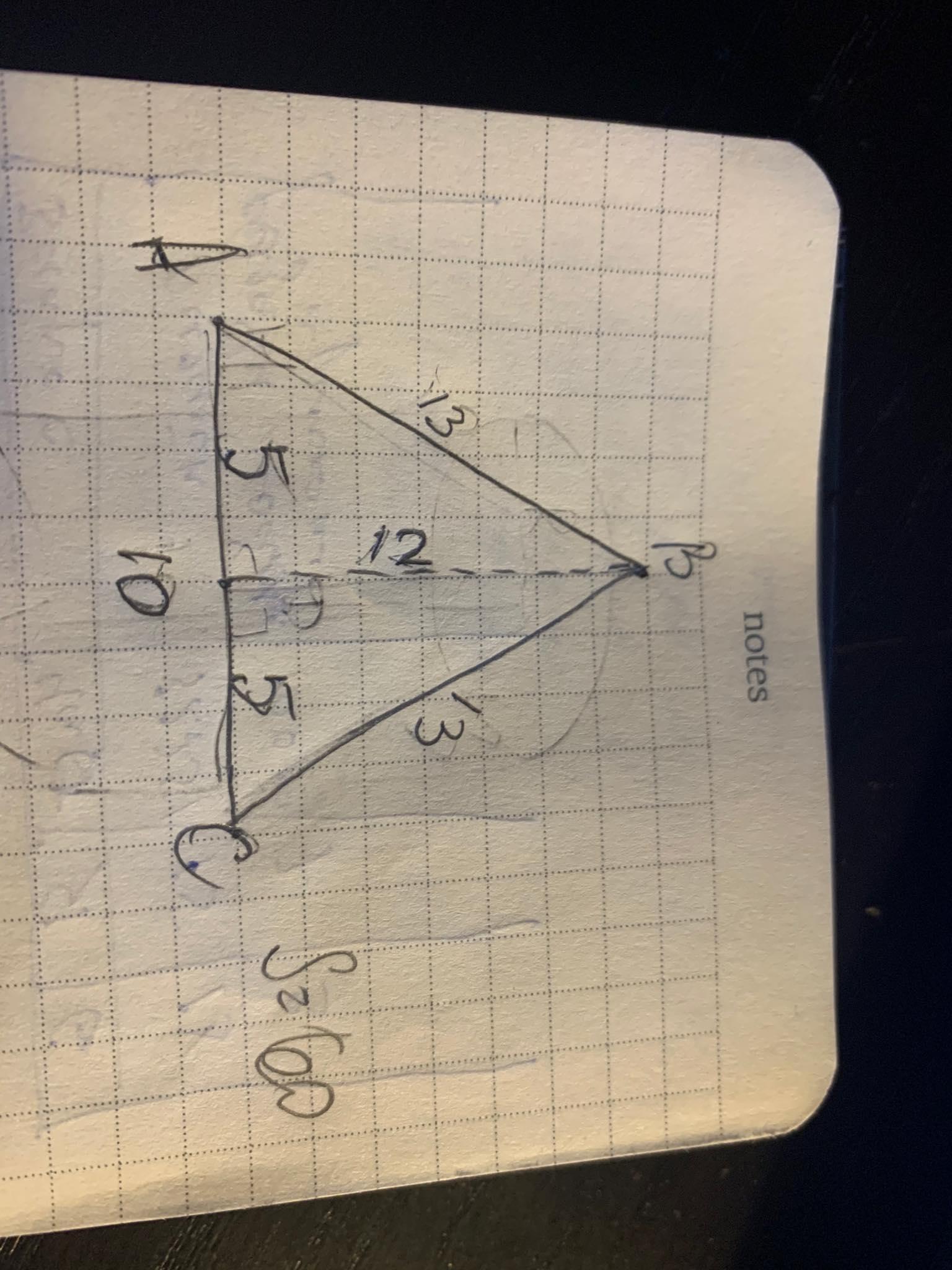 Основание равно 10 см. (см рисунок). половина основания - 5 см.