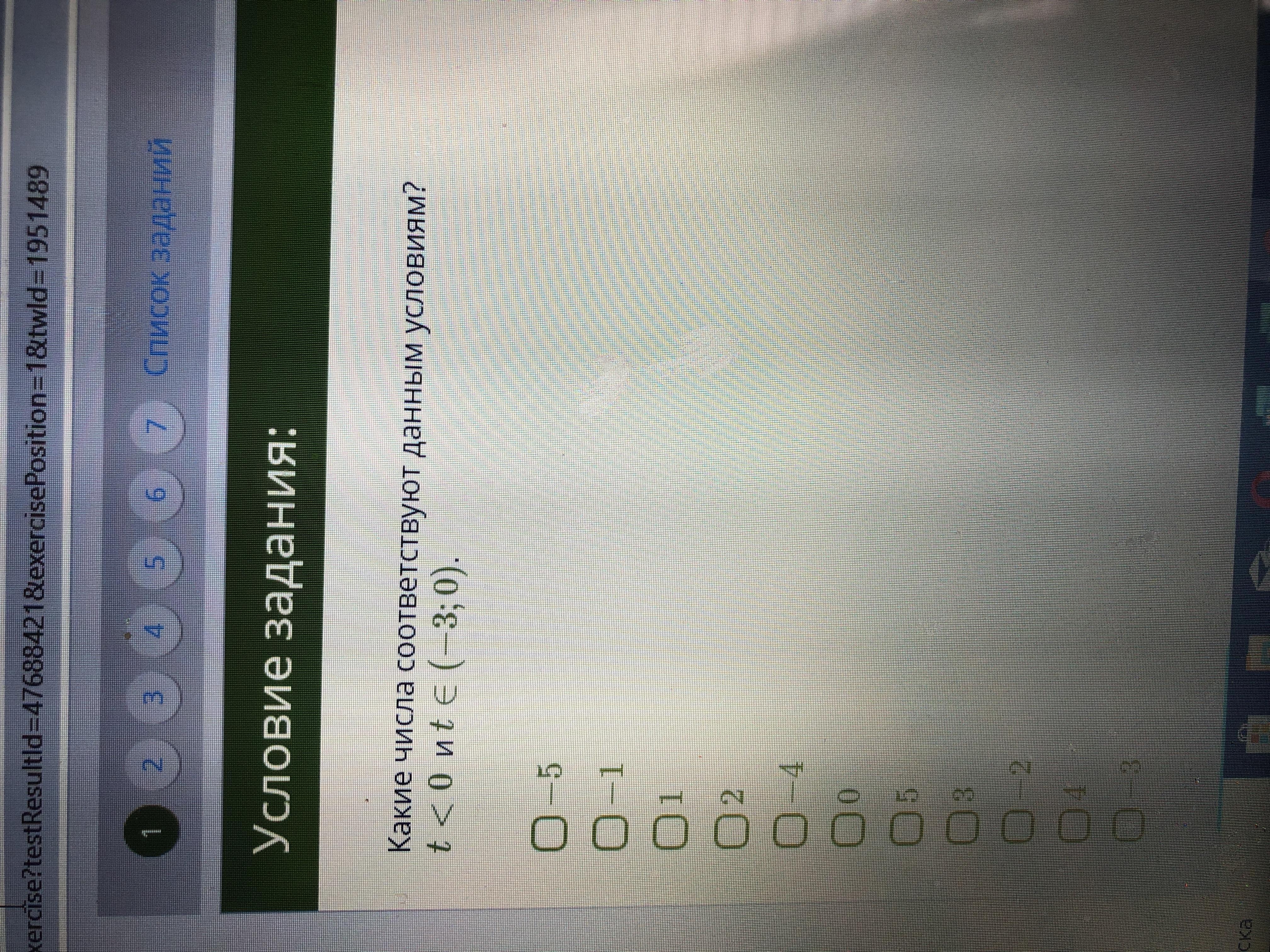 1. Какие числа соответствуют данным условиям? t<0 и t€(-3;0).