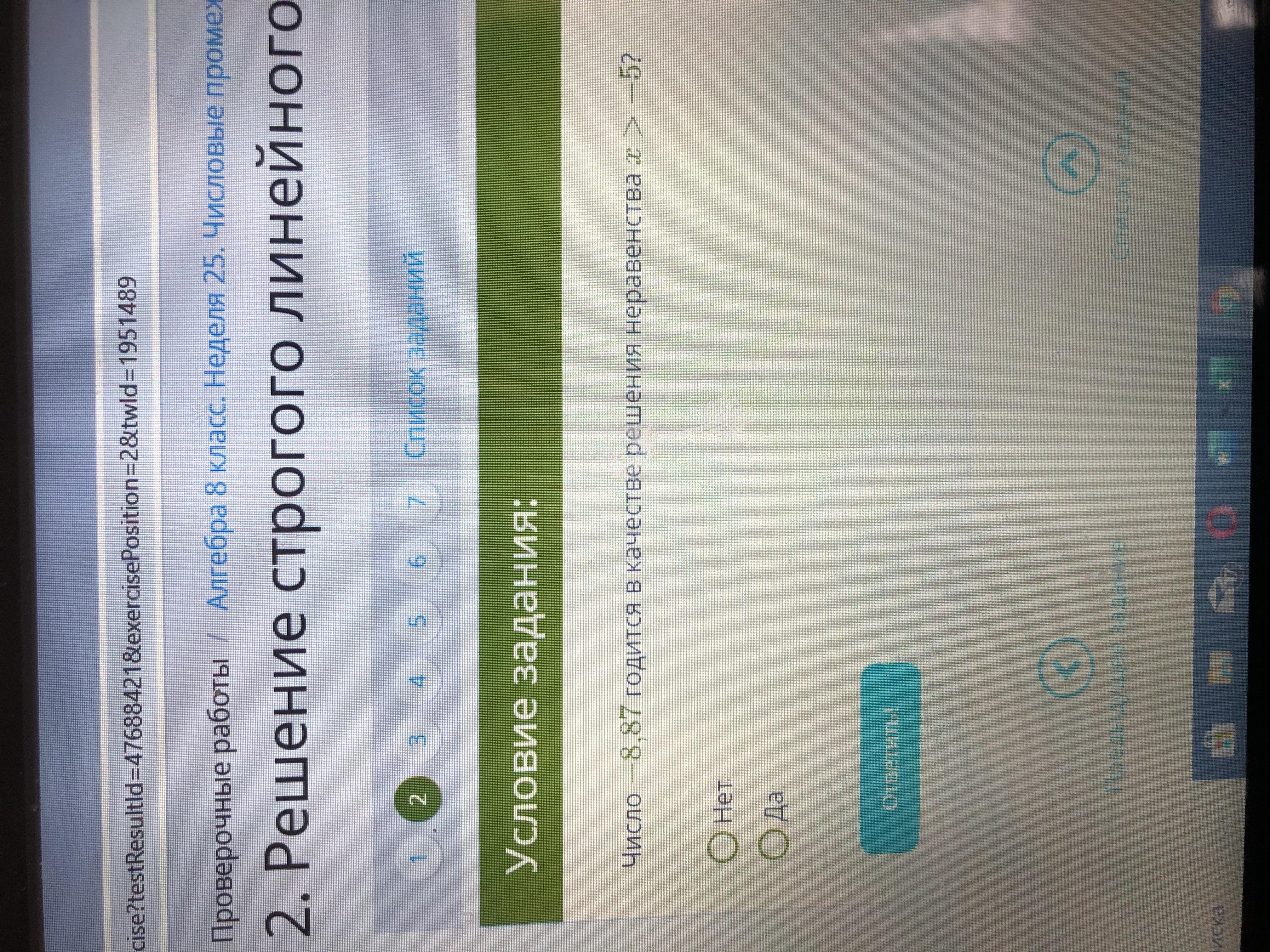 2. Число -8,87 годится в качестве решения неравенства х>-5?