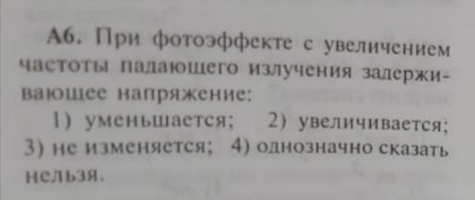 Из формулы видно, что при увеличении частоты задерживающее напряжение увеличится. при чем зависимость линейная.