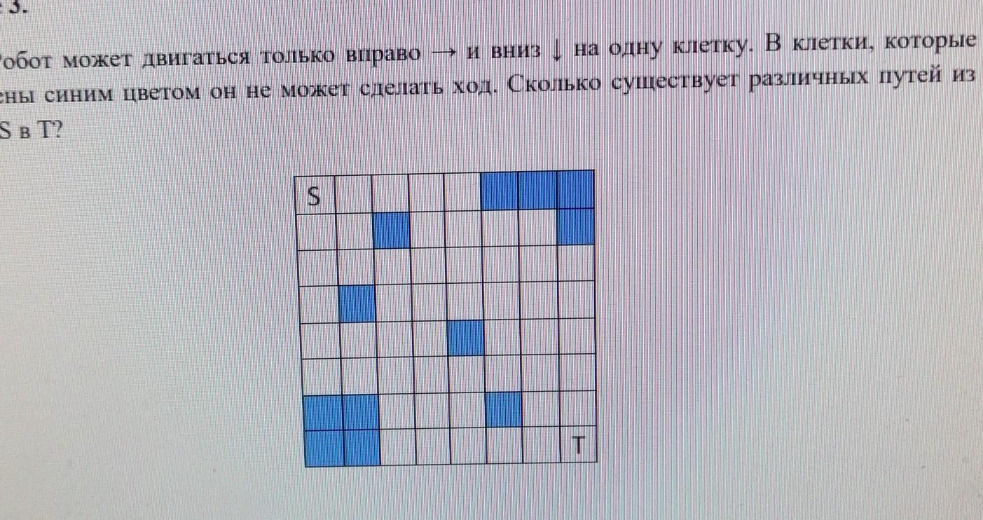 Робот может двигаться только вправо — и вниз на одну клетку. В клетки, которые