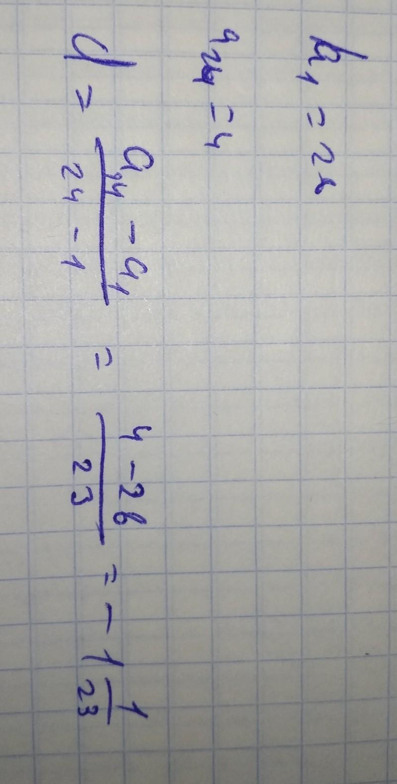 знайдіть різницю арифметичної прогресії якщо: А1=28; а24=4