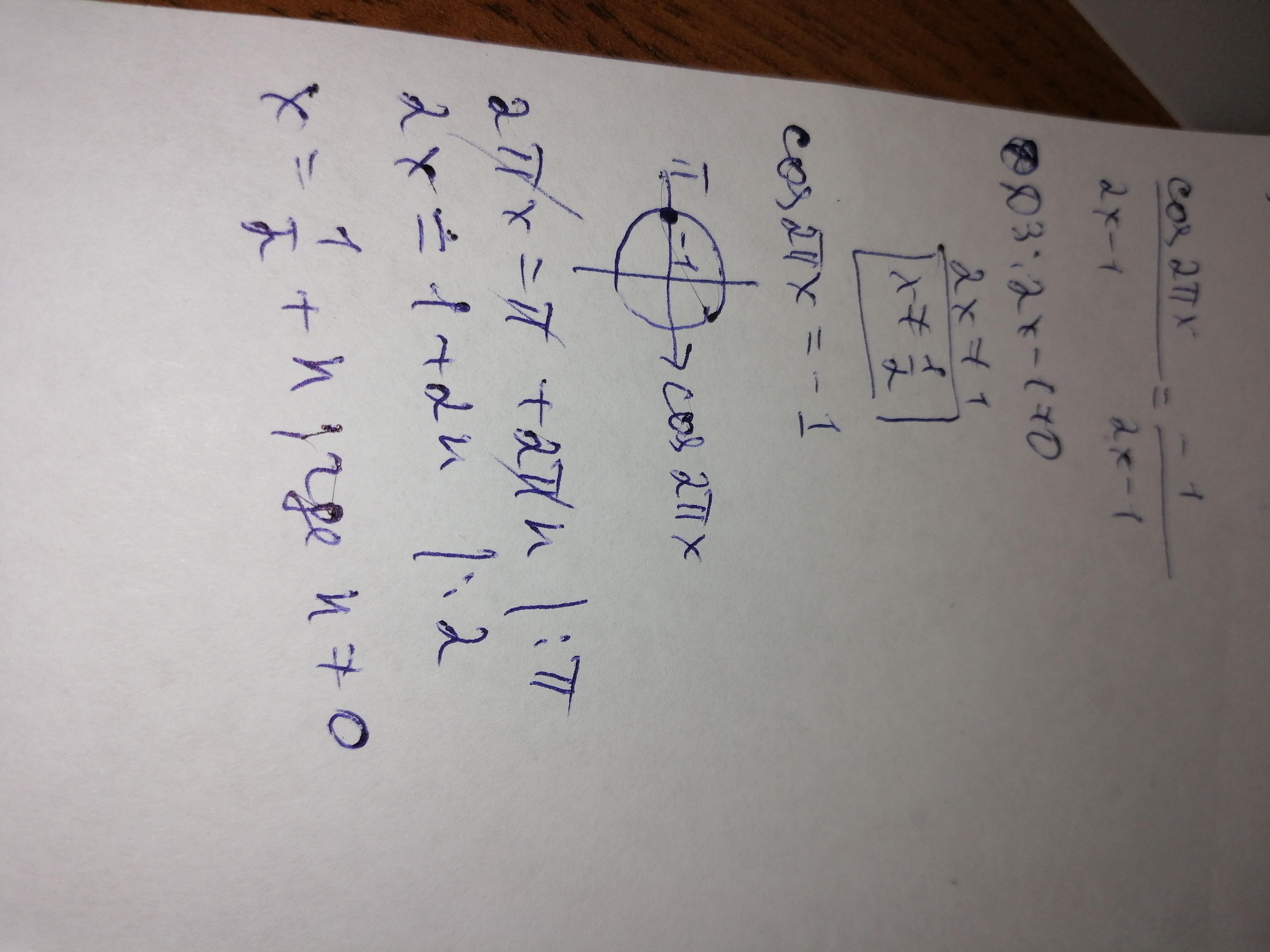 cos2pix=-1; 2pix=pi+2pik; x=1/2+k