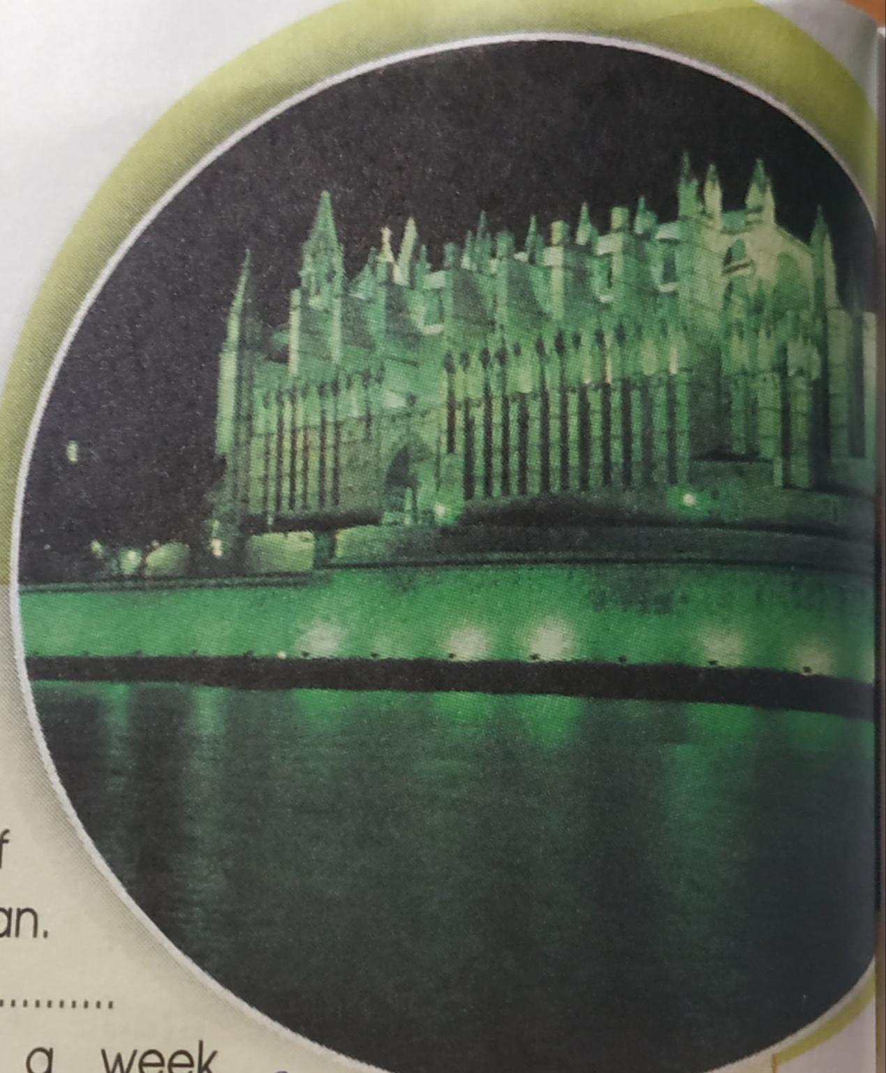 In the picture, I see an architecture next to the canal.And I saw in the picture there is a green color, white and black.