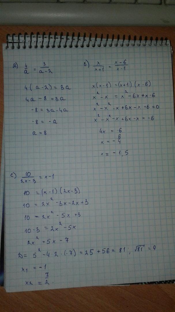 а) 4/а=3/(а-2) ОДЗ: a≠0 a-2≠0 a≠2.