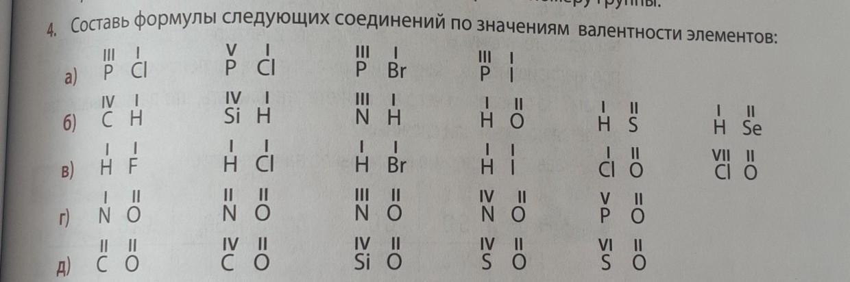 Составь формулы следующих соединений по значениям валентности элементов