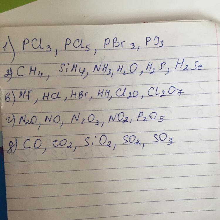 HF HCI HBr HI CI2O CI2O7