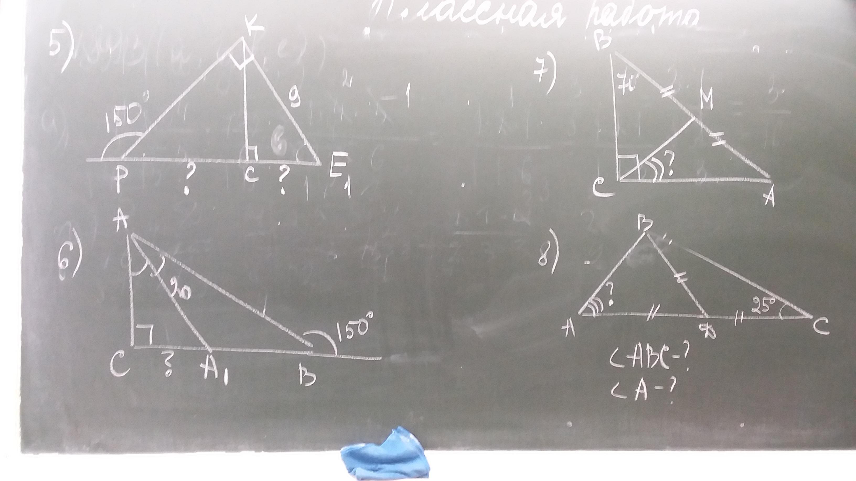 В номере 5- решать нужно без теоремы Пифагора. ЕР=18, а с ∆КСЕ, где <Е= 60*, К=30*,а <С=90*, гипотенуза КЕ=9,тогда СЕ=9:2=4,5см....