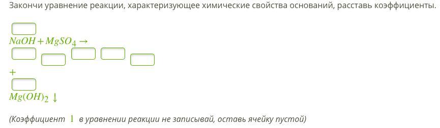 Закончи уравнение реакции, характеризующее химические свойства оснований, расставь коэффициенты.