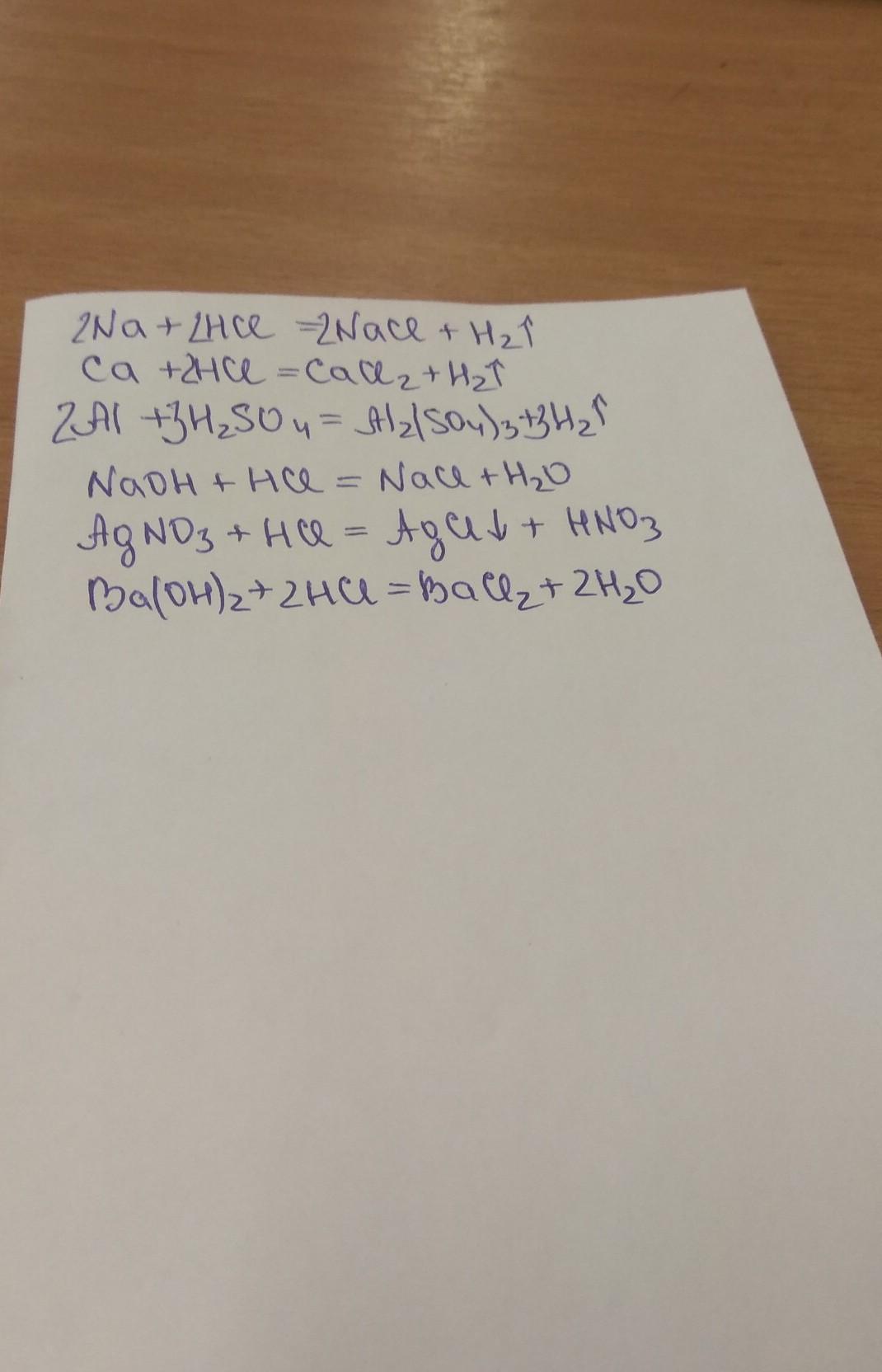 три реакции замещения с кислотами и три реакции обмена с кислотами