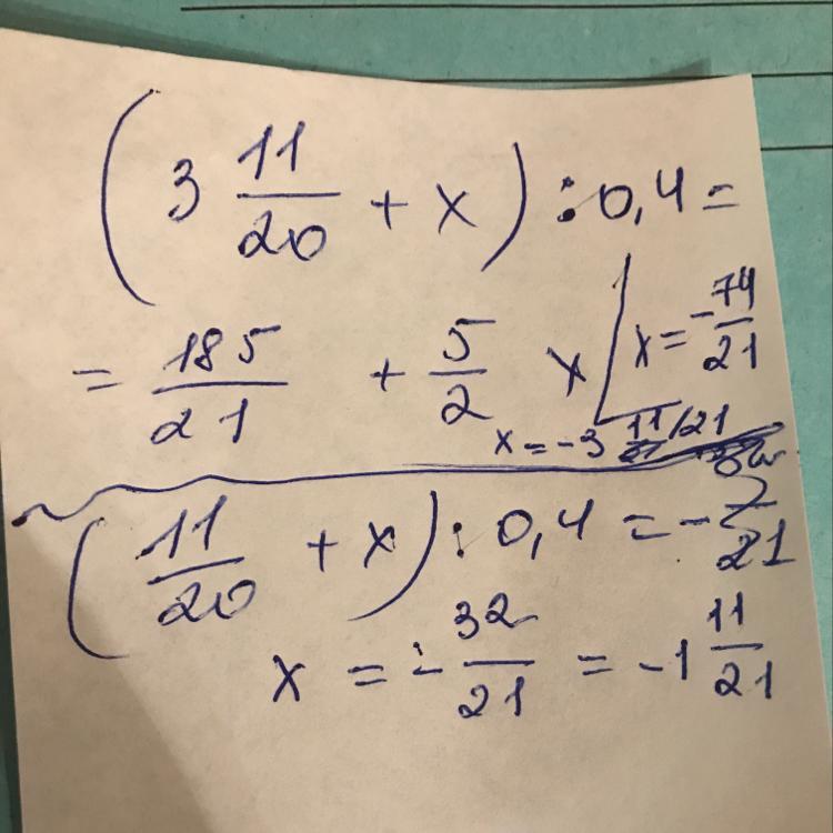 Решите уравнение плиииз (3 11/20 + x ) : 0.4 я даю 20 баллов
