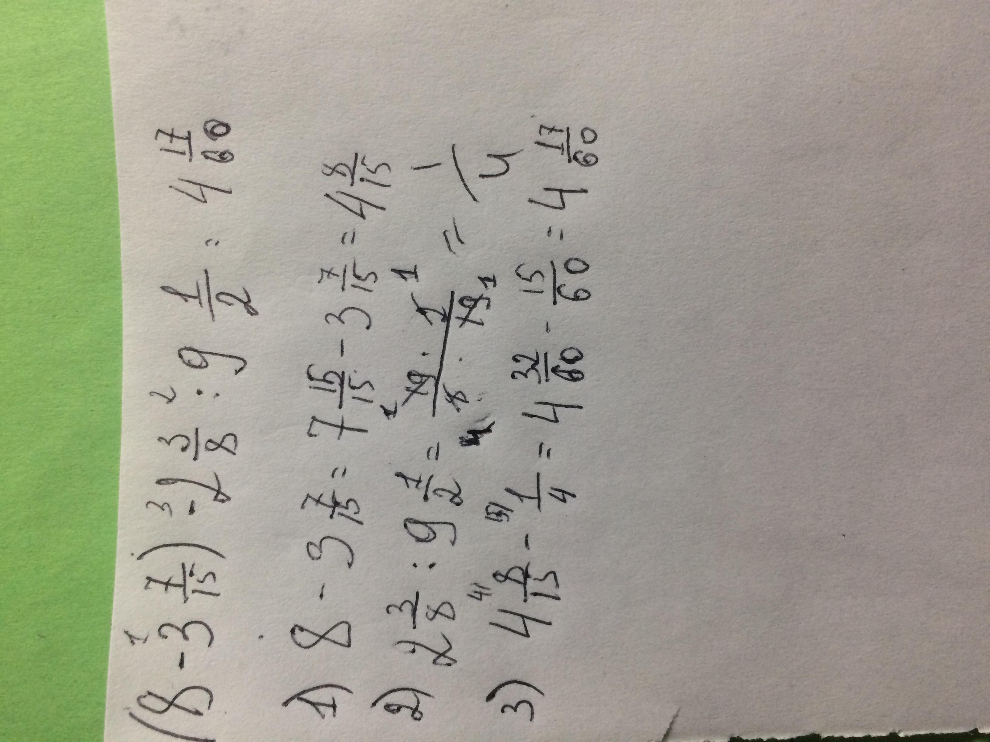 Вычислить (8-три целых 7/15)-две целых3/8:девять целых 1/2 записать решение и ответ пожалуйста