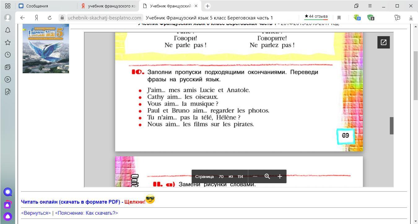 Ответ: J’aime mes amis Lucie et Anotole. - Я люблю своих друзей Люси и Анотоля. 2) Cathy aime les oiseaux. - Кэти любит птиц. 3) Vous aimez la musique? - Вы любите музыку? 4) Paul et Bruno aiment regarder les photos. - Поль и Бруно любят смотреть фотографии. 5) Tu n’aimes pas la télé, Hélène? - Ты не любишь телевидение, Элен? 6) Nous aimons les films sur les pirates.- Мы любим фильмы о пиратах.
