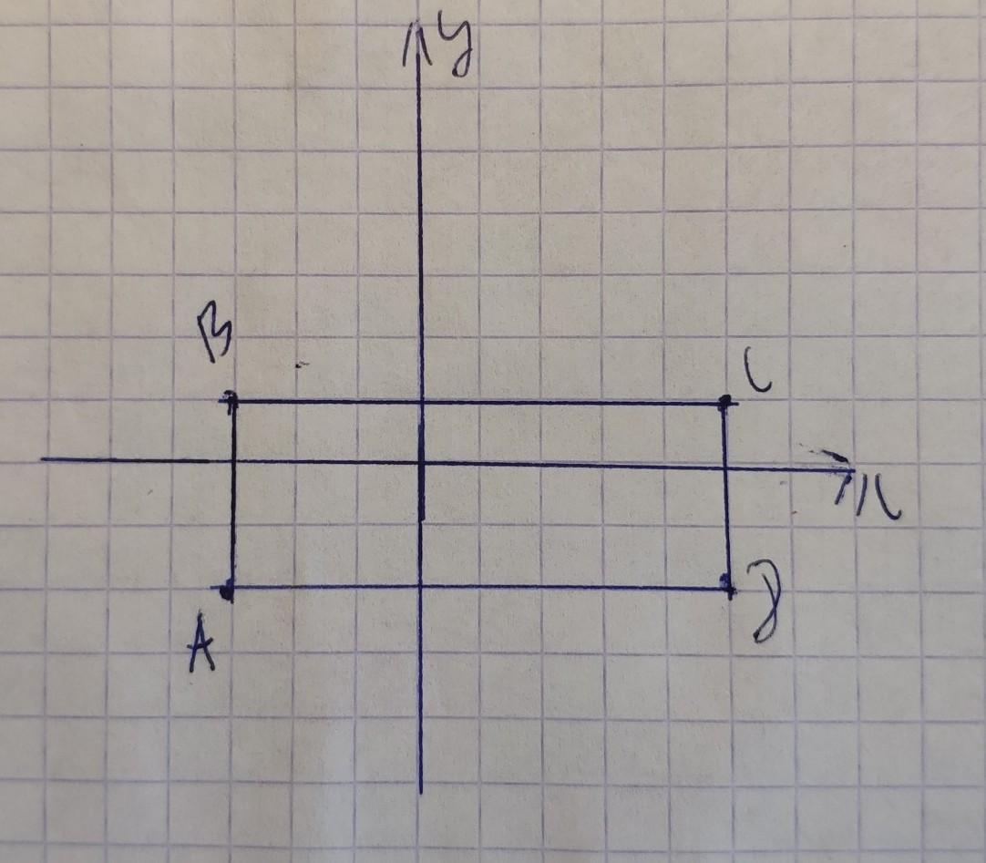 Ищем точки с одинаковыми ординатами. Допустим с A и Д. чтобы найти расстояние между ними, отнимаем абсциссы. 5-(-3) = 8. Чтобы найти вторую сторону, ищем две точки с одинаковыми абсцессами. Допустим, А и В. Чтобы узнать расстояние между ними, отнимаем ординаты. 1-(-2)=3