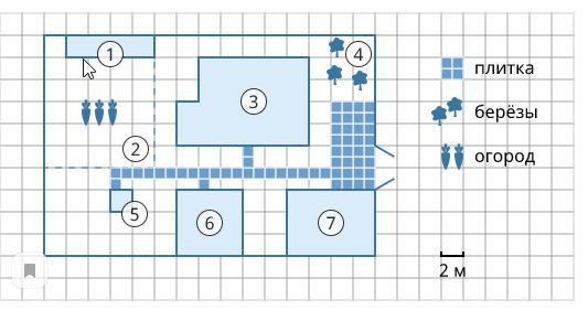 От колодца до теплицы 6 клеточек. Сторона одной клеточки соответствует 2м.