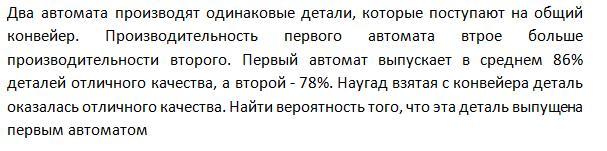 p(A)=p(H₁)·p(A/H₁)+p(H₂)·p(A/H₂)=0,75·0,86+0,25·0,78=0,84