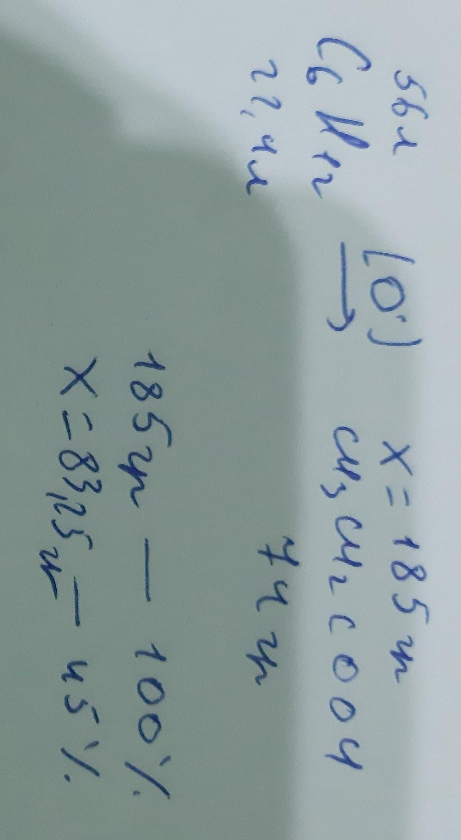 Вычислите массу пропионовой кислоты, которую можно получить окислением 56 л гексана (н.у.) с выходом 45%. Пожалуйста помогите)