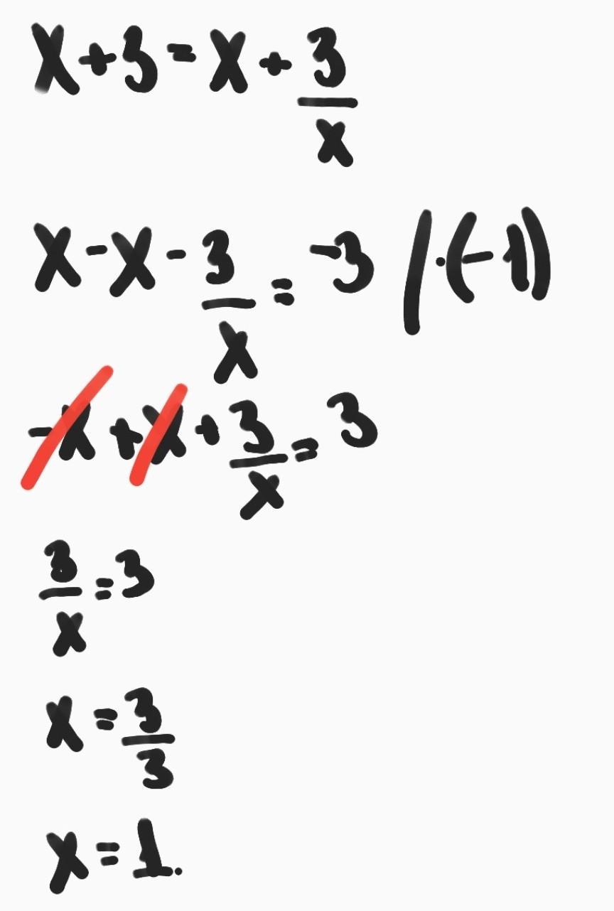 Эм...Вычитаем из обеих частей X,получаем 3=3/x то есть x=1 ....Какой дискриминант???