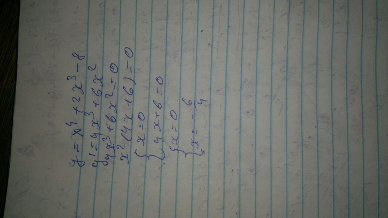y=x⁴+2x³-8 , x∈[-1;1]-должно быть так. Иначе нахождение максимума(минимума) под вопросом.