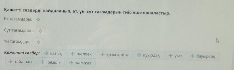 Сүт тағамдары:қатық, уыз, ірімшік.