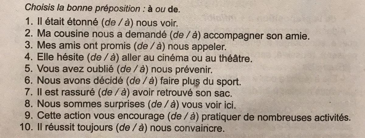Choisis la bonne préposition : à ou de.