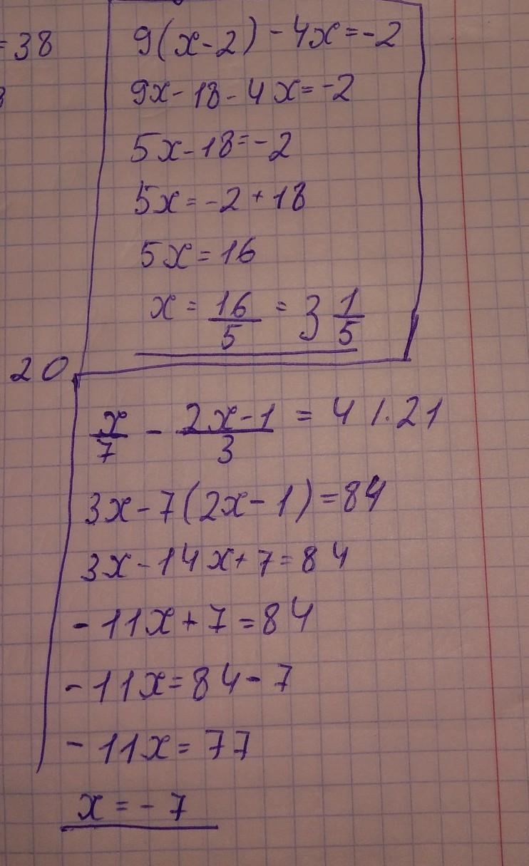 а) 9x-18-4x=-2, 5x=16, x=16/5=3,2