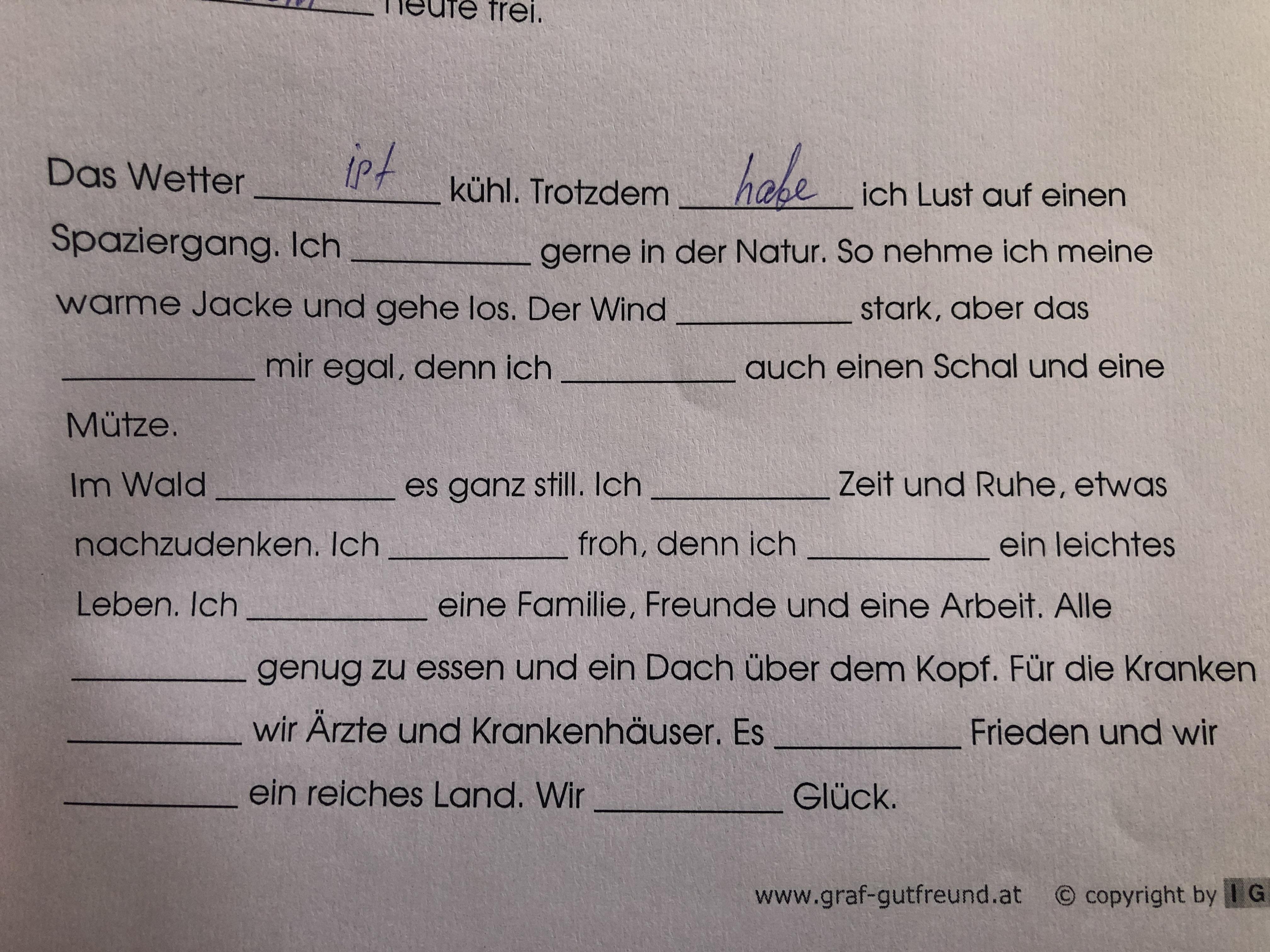 Помогите, пожалуйста правильно расставить haben oder sein