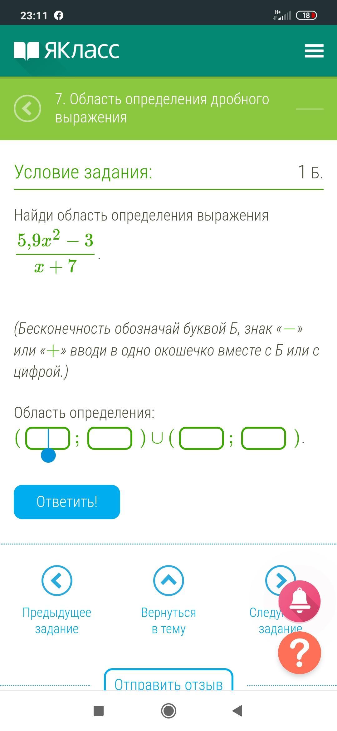 3) Область определения (-Б;-7)∪(-7;+Б)