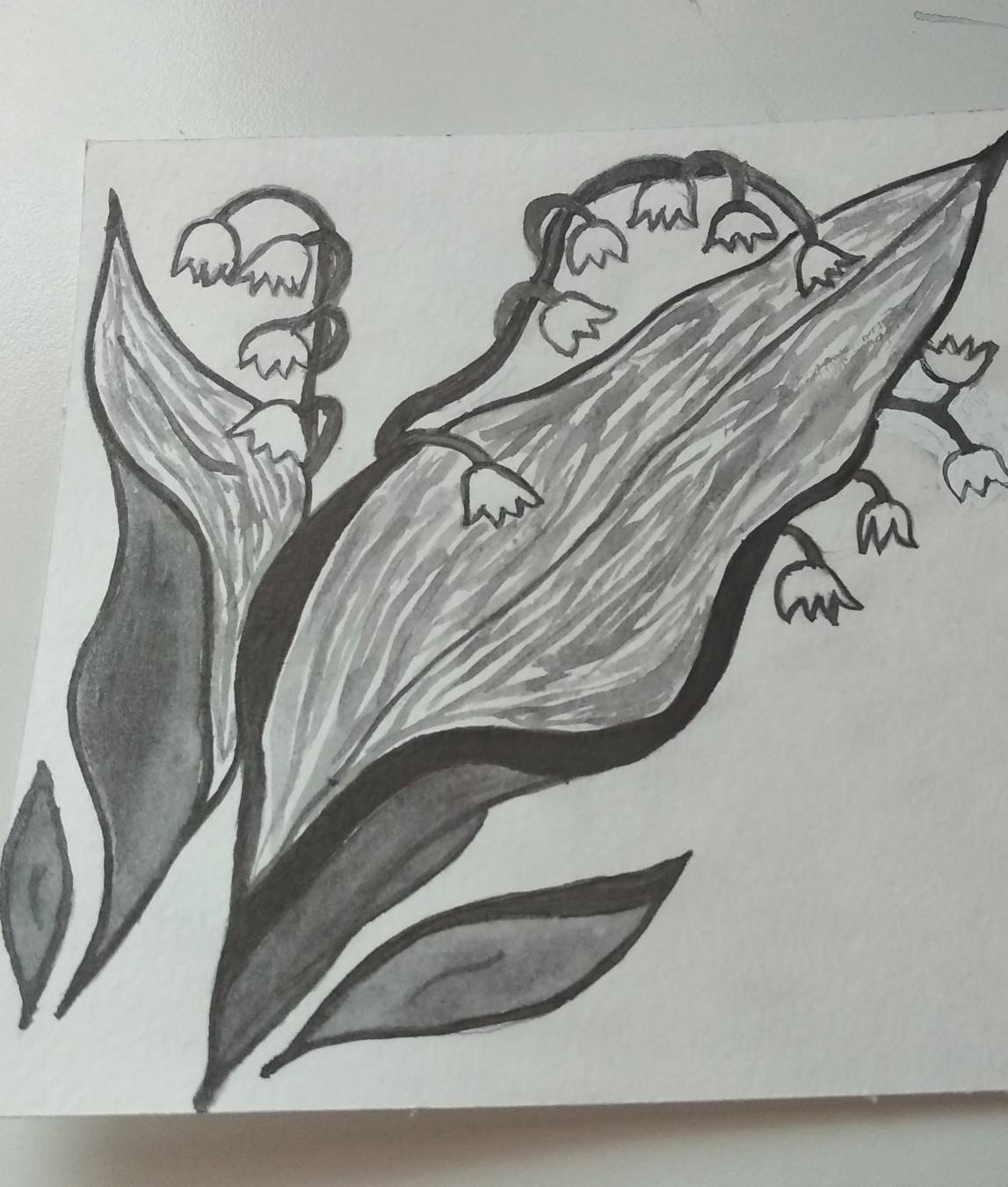 Люди вот я сейчас рисую ландыши тущею и вот скажите пожалуйста правильно ли я всё сделала или нужно листочки закрасить?