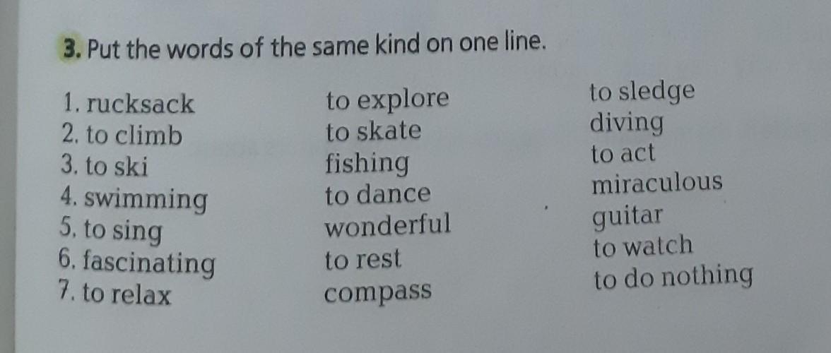 2. to climb, to skate, , to ski