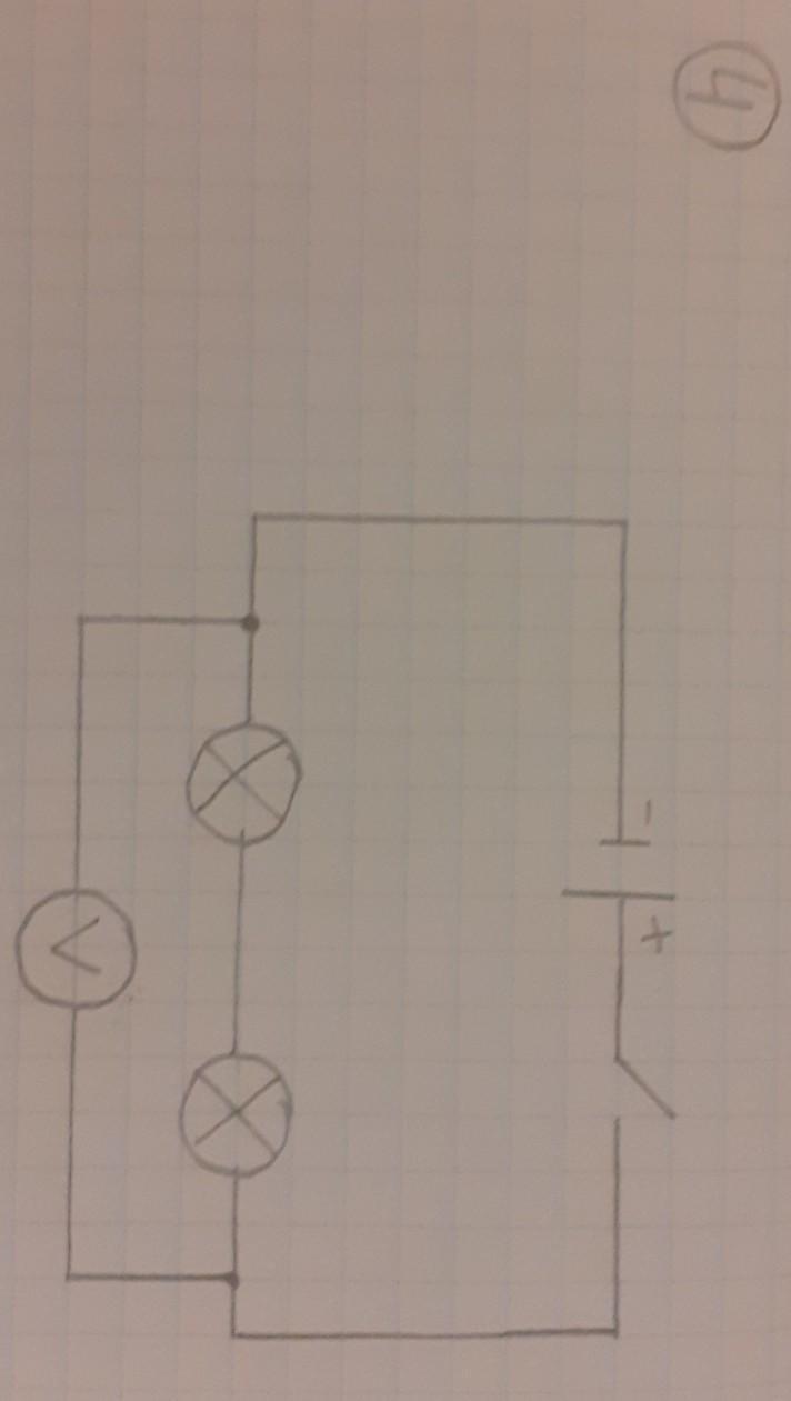 1) Начертите электрическую цепь ,в которую входит источник тока, ключ, две лампочки, амперметр. 2) Начертите электрическую цепь , в которую входит источник тока, ключ, лампочка, резистор, вольтметр. Вольтметр измеряет напряжение на резисторе. 3).Начертите электрическую цепь ,в которую входит источник тока, ключ, лампочка, амперметр, резистор. 4) Начертите электрическую цепь , в которую входит источник тока, ключ, две лампочки, вольтметр. Вольтметр измеряет напряжение на двух лампочках.