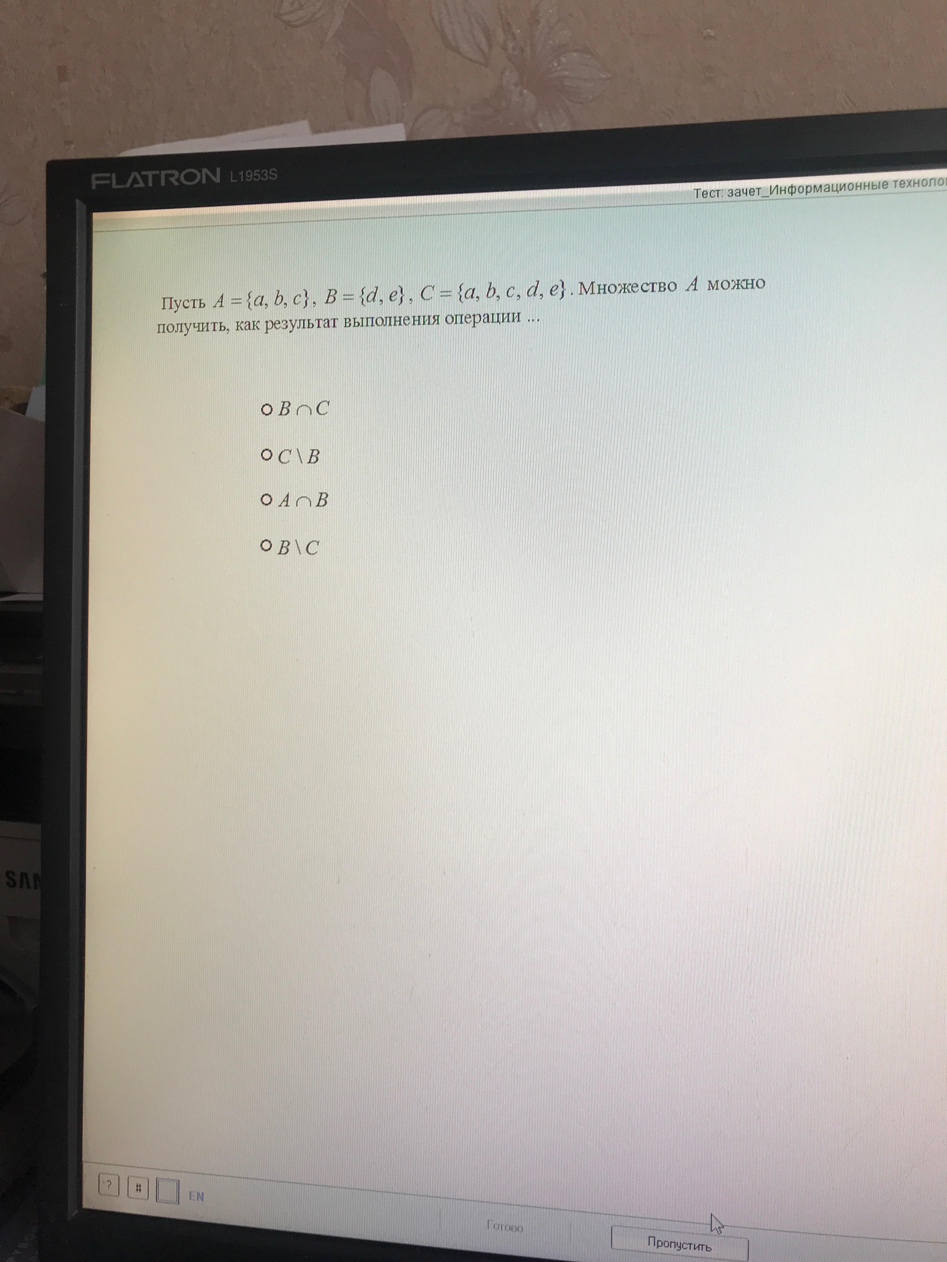 Множество А можно получить с помощью разности С\В