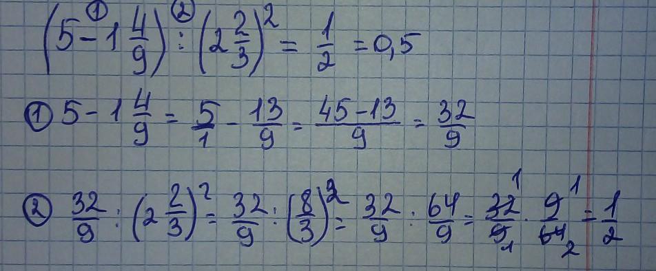 вычислите (5-1 4/9):(2 2/3)² - 219 !!