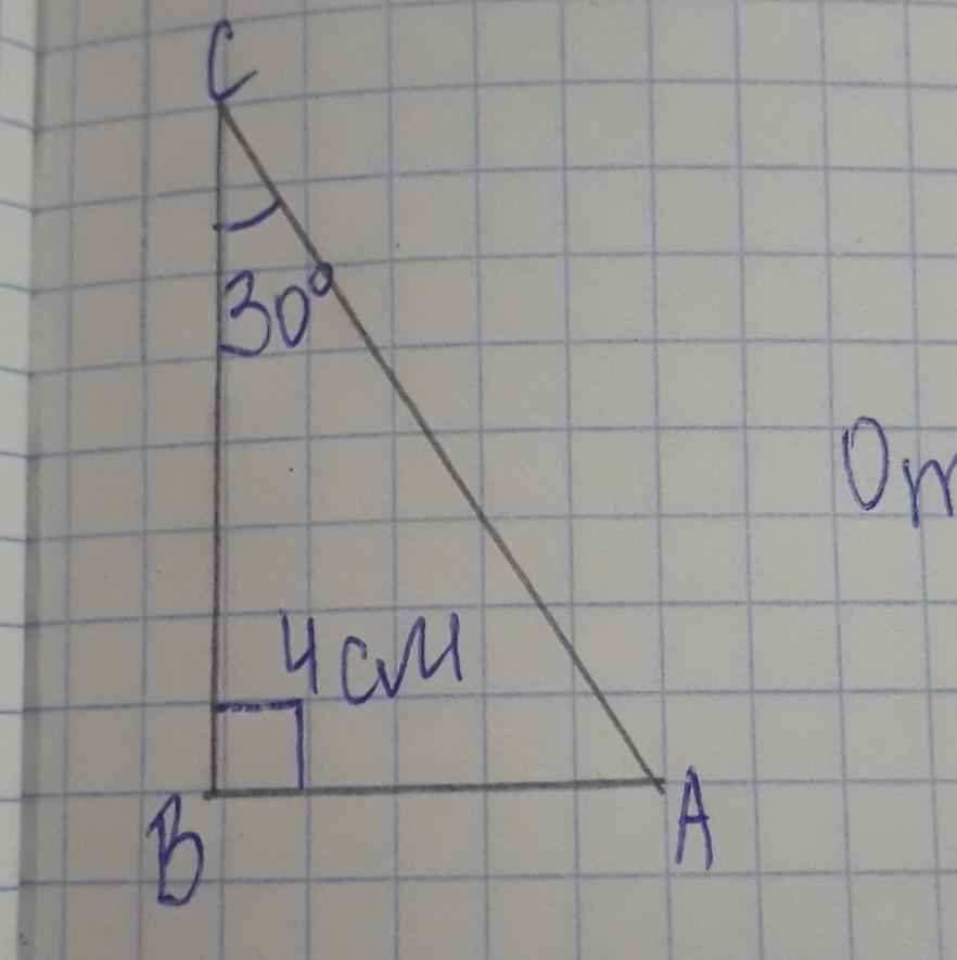 В прямоугольном треугольнике сторона лежащая напротив угла в 30° равна половине гипотенузы, значит: