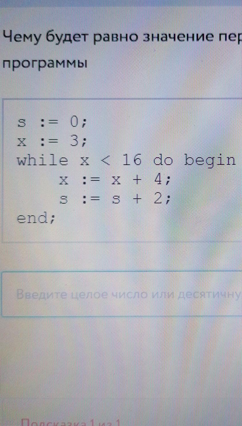 Чему будет равно значение переменной S после выполнения фрагмента программы