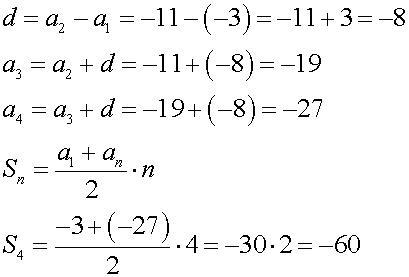 Вычисли следующие два члена арифметической прогрессии и сумму первых четырёх членов, если a1=9 и a2=10,4.