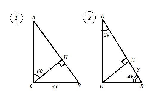 1) ΔАВС , ∠С=90° , СН⊥АВ , ∠ АСН=60°, ВС=3,6 см . Найти: АВ=?