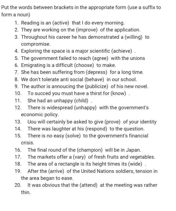 put the words between brackets in the appropriate form