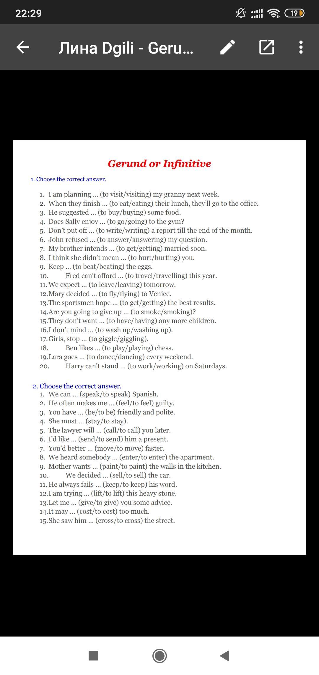 P.S. в 7ом предложении 1ого упражнения to get/ getting - оба правильно)